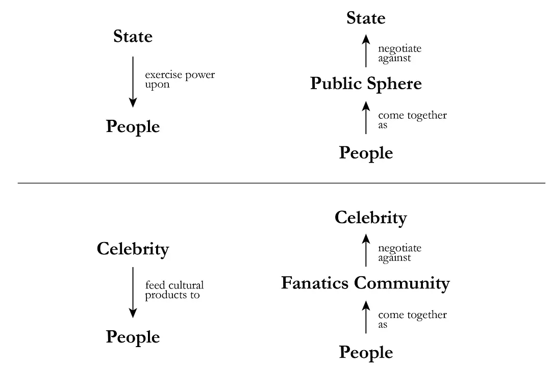 △ 上:政治世界中的公共领域;下:消费世界中的公共领域(“饭圈”)